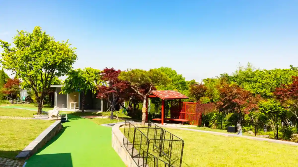 정원만 걸어도 시간이 금세 가지만, 체류 시간을 늘리는 요소들이 있습니다. 아이노리 놀이시설이 있어 가족 단위 방문객의 만족도가 높고, 반려견을 위한 전용 잔디운동장과 샤워장도 마련되어 있습니다.