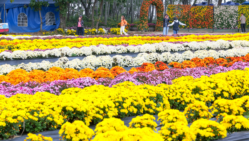 광활한 5만㎡의 국화 정원은 보는 방식에 따라 전혀 다른 이야기를 들려줍니다. 가까이에서 보면 한 송이의 결이 눈에 들어오고, 멀리서 보면 색의 물결이 산책로를 따라 흐릅니다. 때로는 천천히, 때로는 일부러 서두르며 걸어 보세요.